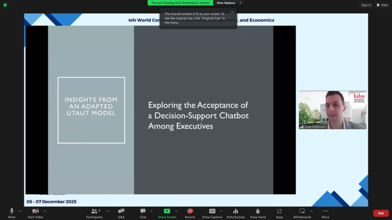 Mr. Sven KottmannExploring the Acceptance of a Decision-Support Chatbot Among Executives: Insights from an Adapted UTAUT ModelStuttgart Media University, Germany
