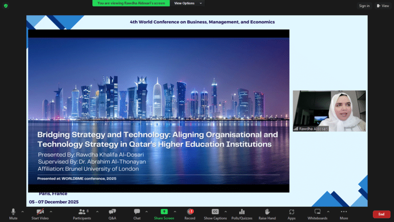 Ms. Rawdha AldosariBridging Strategy and Technology: Aligning Organisational and Technology Strategy in Qatar’s Higher Education InstitutionsBrunel University of London, Qatar
