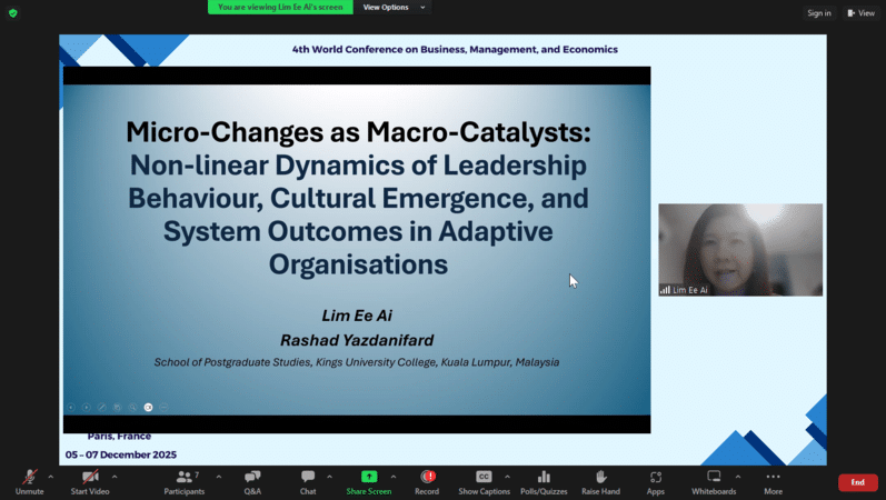 Ms. Lim Ee AiMicro-Changes as Macro-Catalysts: Non-Linear Dynamics of Leadership Behaviour, Cultural Emergence, and System Outcomes in Adaptive OrganisationsSchool of Postgraduate Studies, Kings University College, Kuala Lumpur, Malaysia